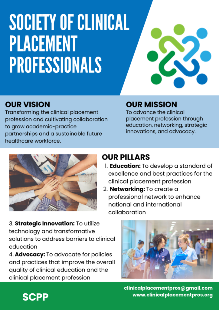 To advance the clinical placement profession through education, networking, strategic innovations, and advocacy.